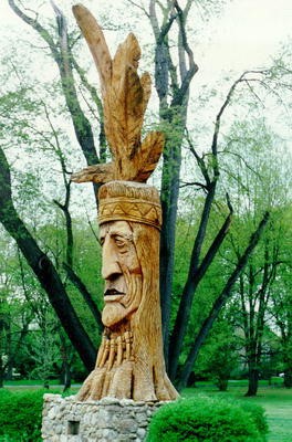 “I study the Indians of the area, then visualize an Indian within the log. It is a composite of all the native people of the state.”  A quote from Peter Toth.