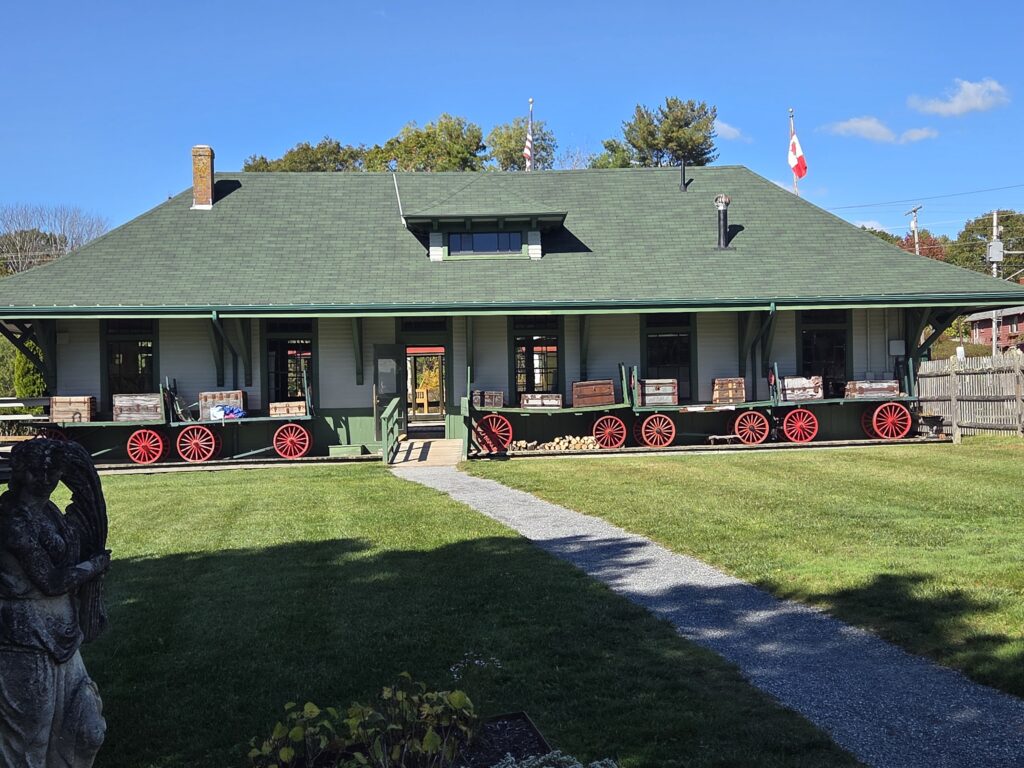 The museum has a vintage train, powered by coal and steam, and two original train stations. The one you see here from the back, the Freeport Station was built in 1912 and moved in 1964, 39.2 miles from Freeport to Boothbay, over the Kennebec River.