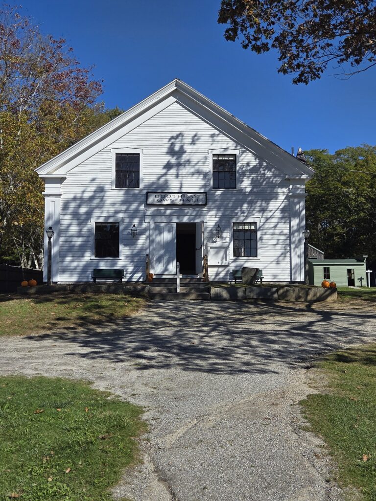 The Boothbay Town Hall is the oldest structure on the green, moved there in 1990. Built in 1847 for $700, it is a good example of Greek Revival style and has a magnificent open room with a gorgeous floor, still used for meetings.