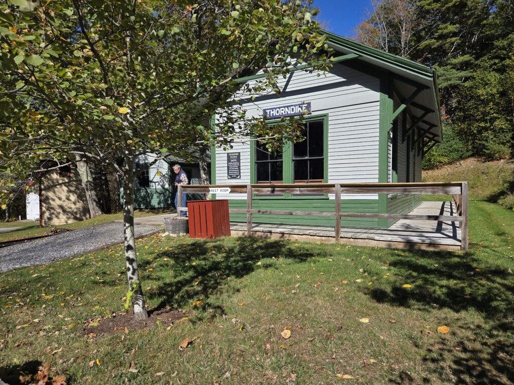 The second station, the Thorndike Station, is located halfway around the large circle of the narrow track on which the train takes its passengers for a ride. The station was built in 1871 for the Belfast & Moosehead Lake Railroad.