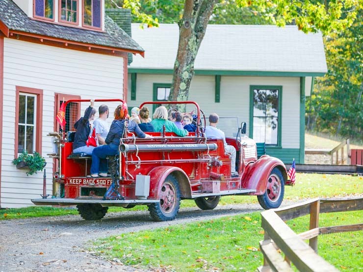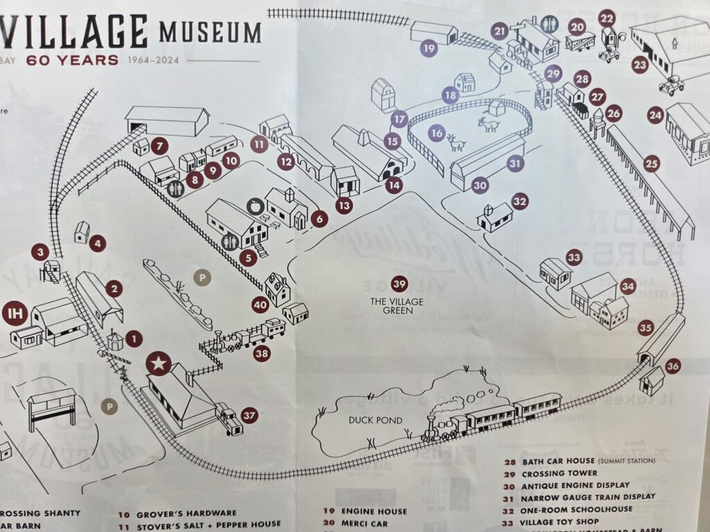 The circular track surrounds the village, which contains artifacts from Maine’s railroad history as well as historical structures from the 1800s and 1900s that were moved to the site. There is also a goat enclosure with two very friendly goats named Coal and Tender. See 16 on the map.